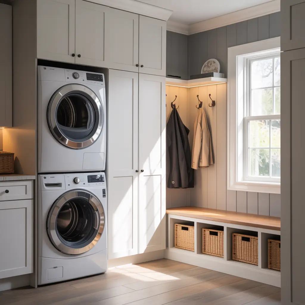Upgraded appliances with smart features feel luxurious. Machines with steam settings, Wi-Fi connectivity (so you get alerts when your load is done), and sleek finishes make the space feel premium. Front-loading machines in matte black or white with modern controls look like they belong in a magazine.