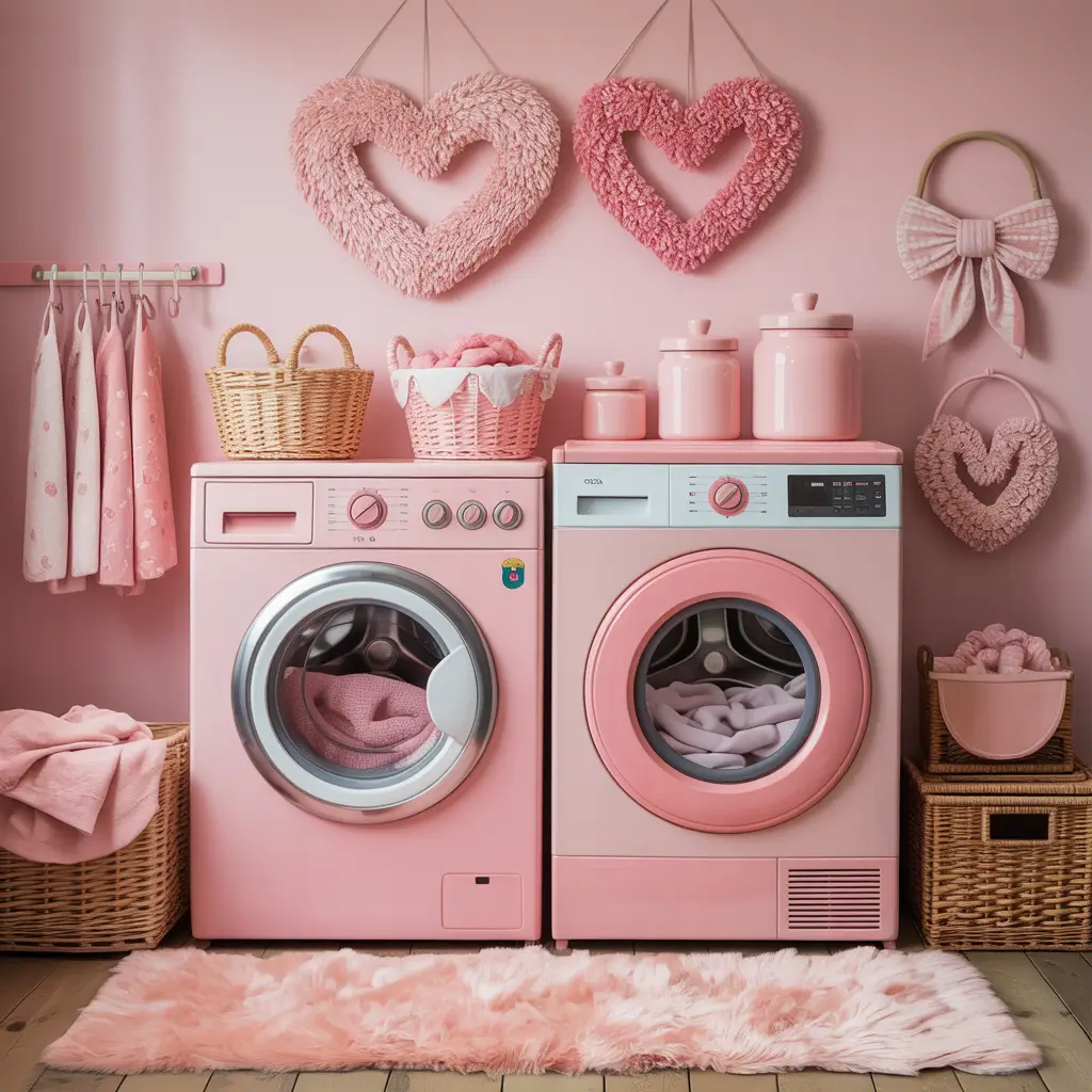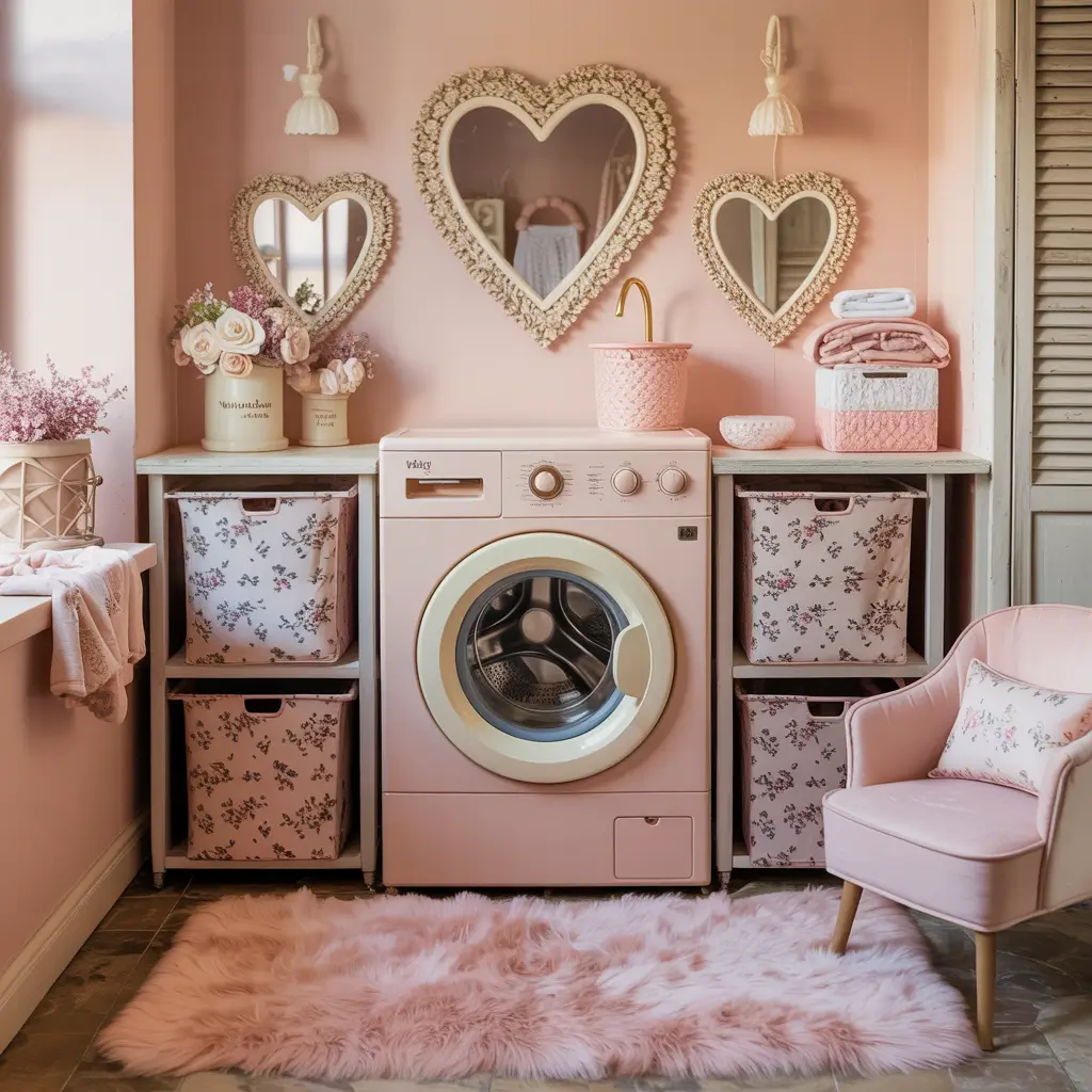 The Soft Girl aesthetic laundry room is like if clouds, peachy sunsets, and cozy blankets came together to create a space. It’s gentle, dreamy, and absolutely adorable in a way that makes you want to take a million screenshots.