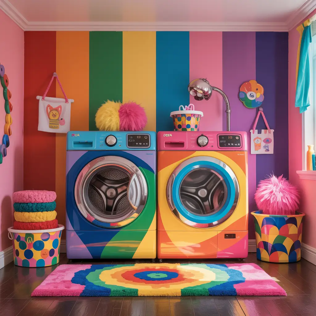 Sometimes you just want to throw color theory out the window and create something that makes you genuinely happy. The Rainbow Fun laundry room is exactly that—pure, unfiltered joy in room form.