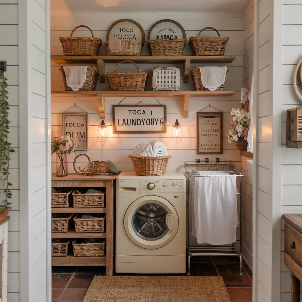 Not everyone gets a massive laundry room, and honestly? That’s totally fine. Some of the cutest layouts I’ve created were in tiny spaces that forced me to get creative. The cozy small space laundry corner is all about maximizing functionality while keeping things adorable.