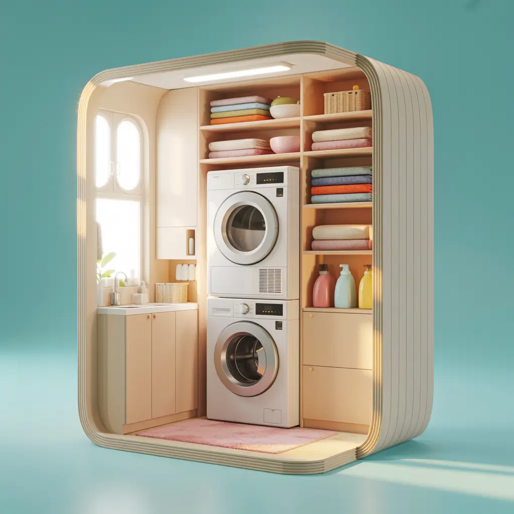 The tiny apartment laundry room (or let’s be real, closet) represents the struggle of urban living. You’ve got limited space, limited options, but unlimited determination to make it work and look cute while doing it.